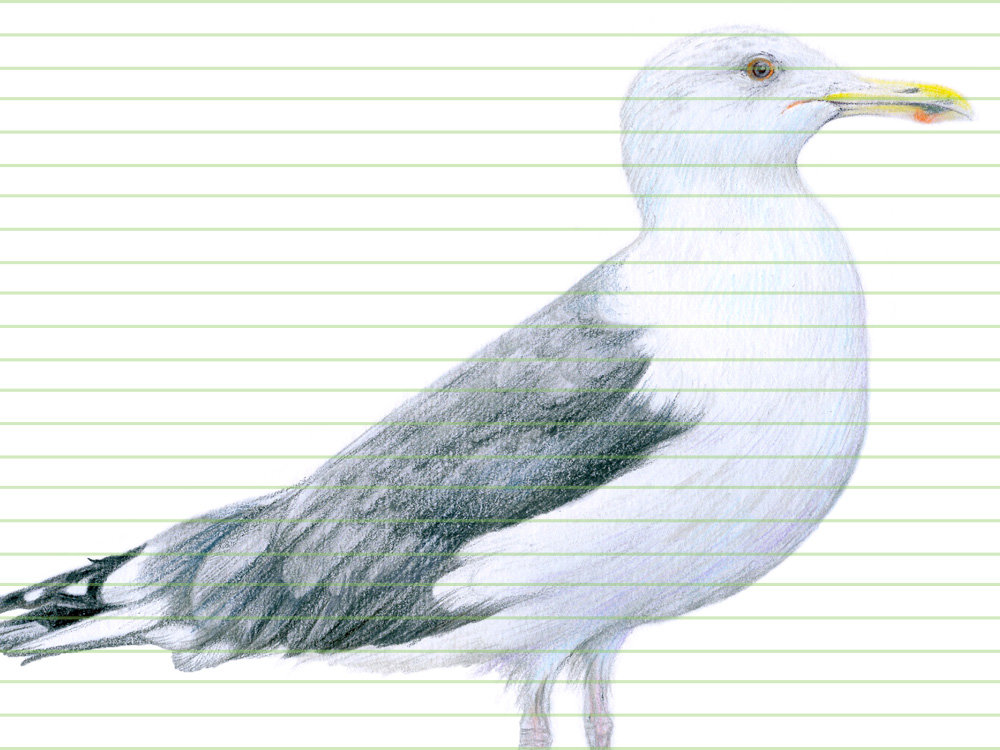 Caspian gull – original colour pencil drawing